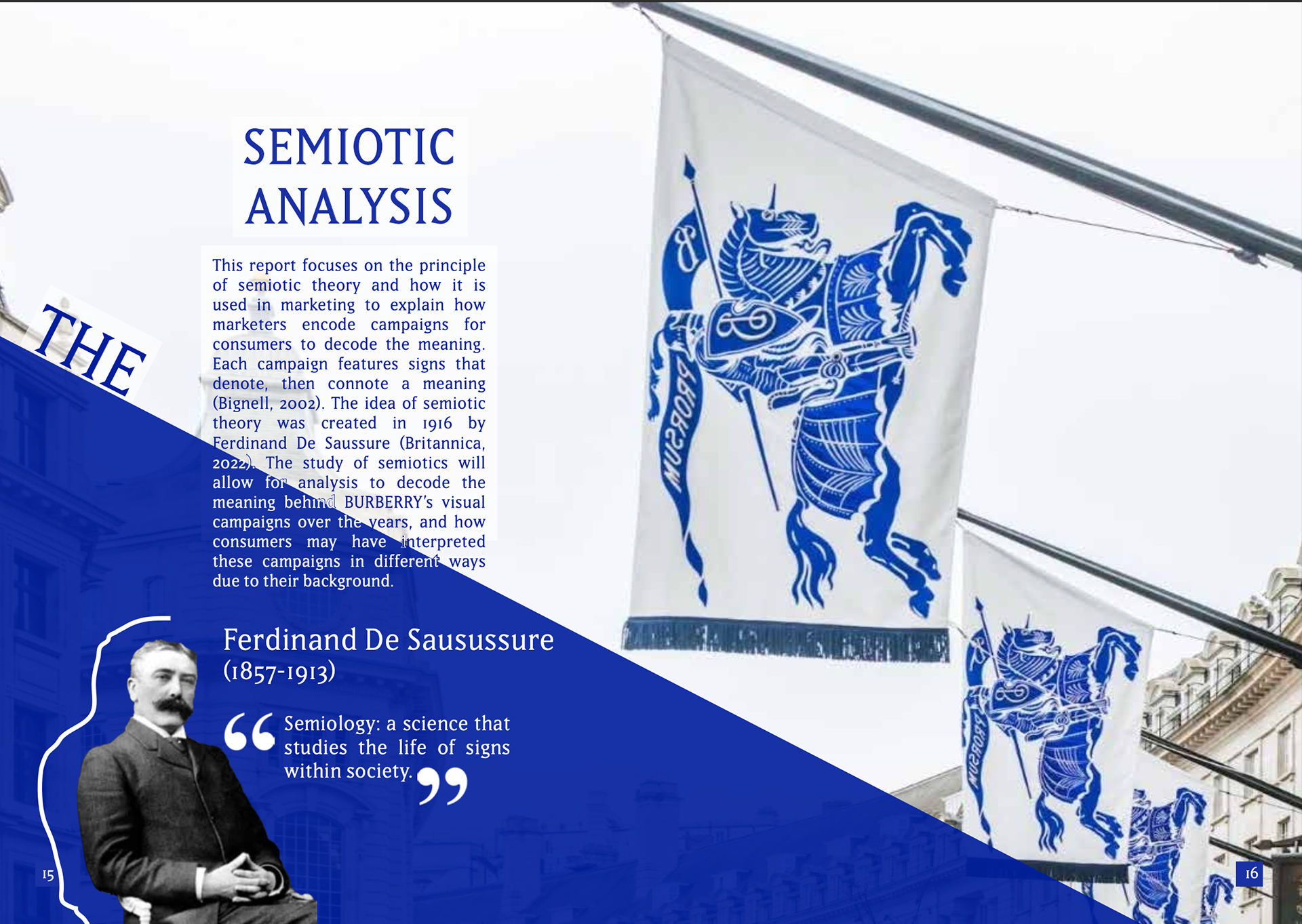 This visual narrative shows how Burberry utilises visuals as a marketing tool and analyses their visual impact through semiotic theory.