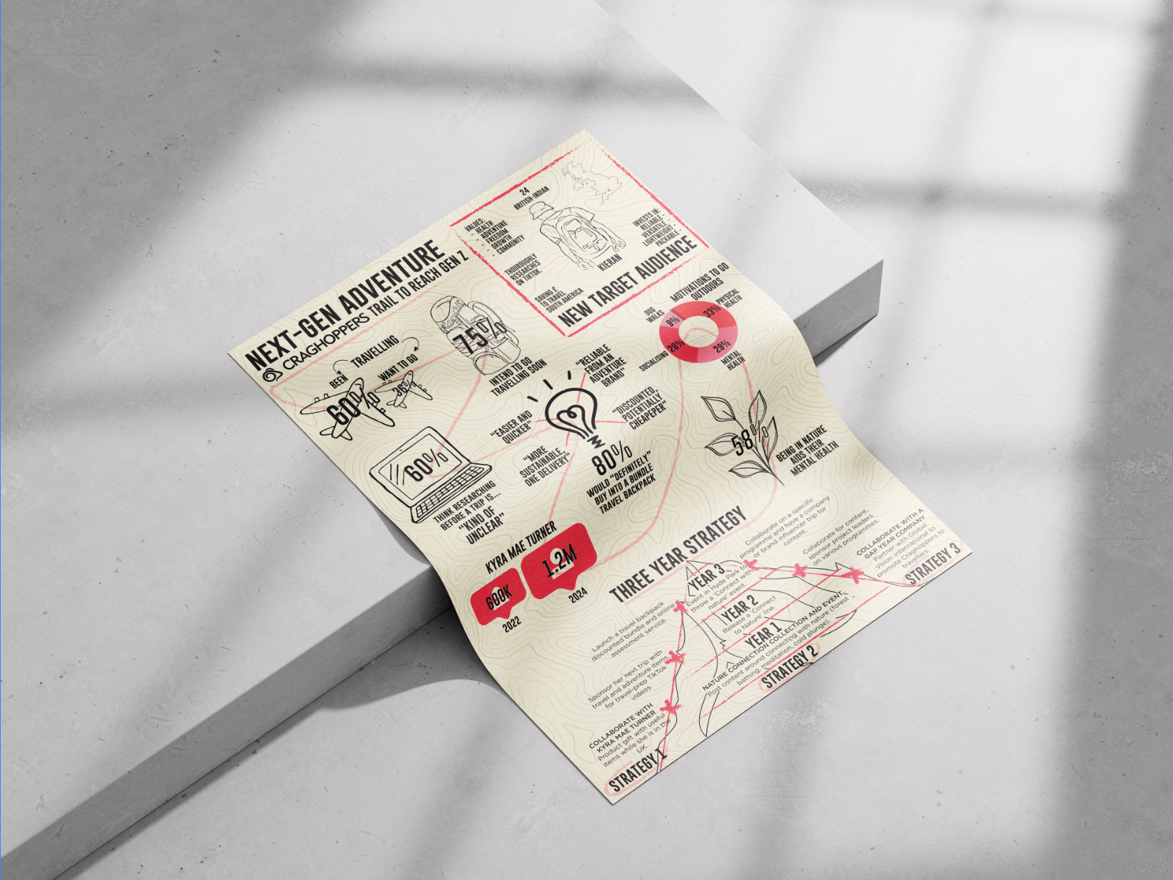 I have visualised consumer insights for Craghoppers on a live project to develop a three-year strategy to target Gen Z. I have visualised data around the power of influencers on social media, to demonstrate the opportunities available to brands.